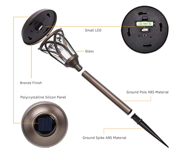 This Aluminum Coated Solar Light is bright enough to light up your pathway/ walkway. The beautiful warm white lighting pattern creates very comfortable and romantic atmosphere. With the Highly Transparent Glass Lamp Cover, light has a good illumination effect that is really comfortable and fascinating.